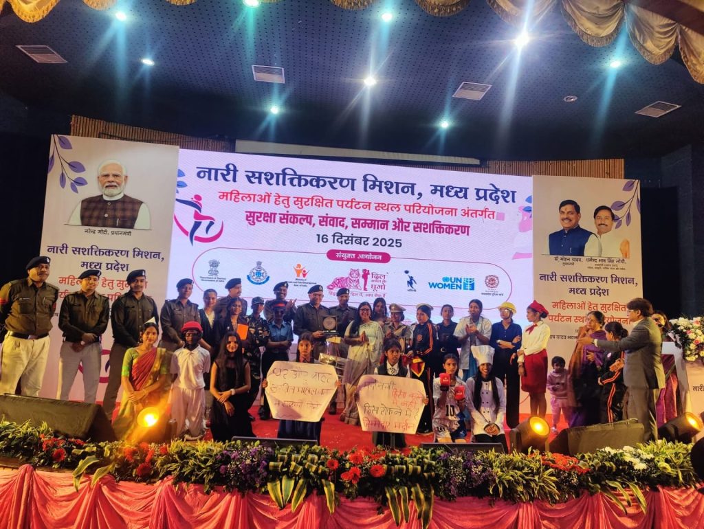 The programme was presided over by the Additional Chief Secretary, Home, Tourism, Culture and Religious Trusts Department, who addressed over 600 young women present at the event. In his address, he emphasised that in Indian culture, women are revered as embodiments of strength and form the backbone of society. He highlighted the vital role women play in instilling values, strength, and inspiration in future generations. He further stressed the need for collective efforts by all government departments, civil society organisations, and service providers to create an environment in Madhya Pradesh where women, whether tourists or local service providers, feel safe, confident, and comfortable.